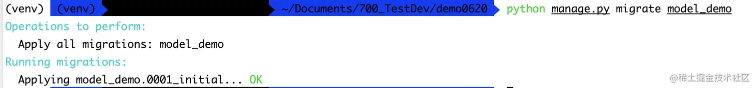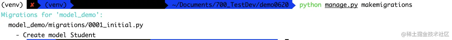 python manage.py makemigrations执行迁移脚本