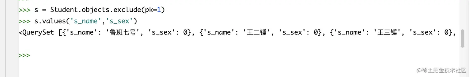 在一些表中,可能存在很多的字段,但是一些字段的数据量可能是比较庞大的,而此时你又不需要,因此这时候我们就可以使用defer来过滤掉一些字段。这个字段跟values有点类似,只不过defer返回的不是字典,而是模型。