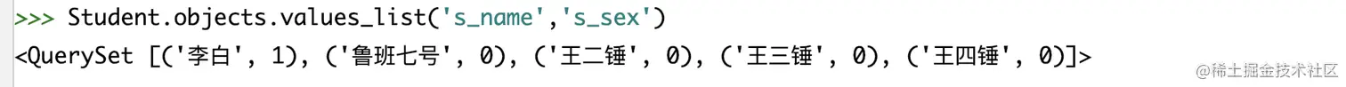 类似于values。只不过返回的QuerySet中,存储的不是字典,而是元组。