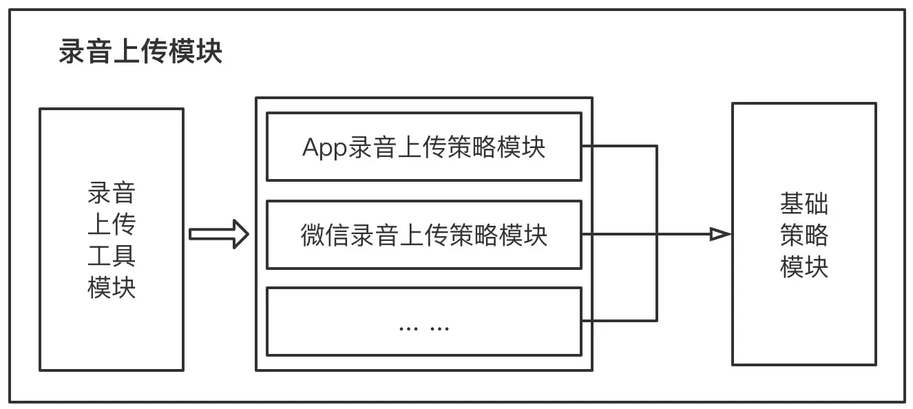 在此使用策略模式,实现录音上传工具模块的录音上传功能。其好处: