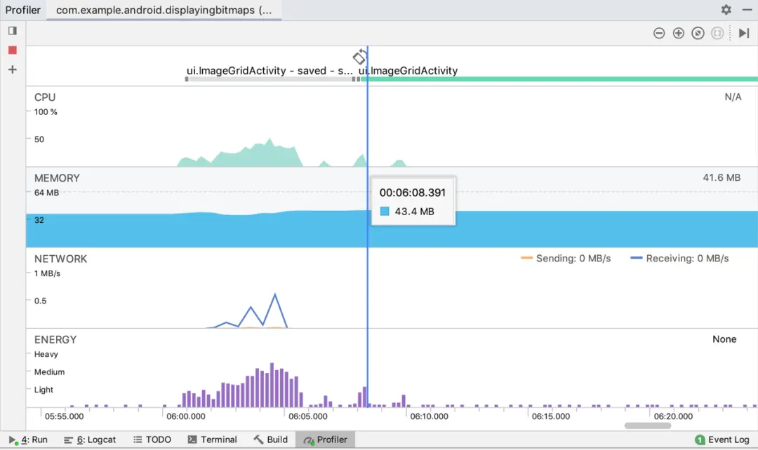 为了帮助开发者开发出更加轻快高效的应用,我们在 Android Studio 3.0 以及更高版本中加入了 Android Profiler 工具,用于应用的 CPU、内存、网络和能耗分析。