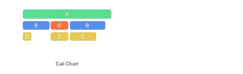 在 CPU Profiler 界面下半部,有四个标签页,分别对应四个不同的数据图表,它们分别是: Call Chart、Flame Chart、Top Down 和 Bottom Up。其中的 Call Chart 可能是最直白的一个,它基本上就是一个调用栈的重新组织和可视化呈现: