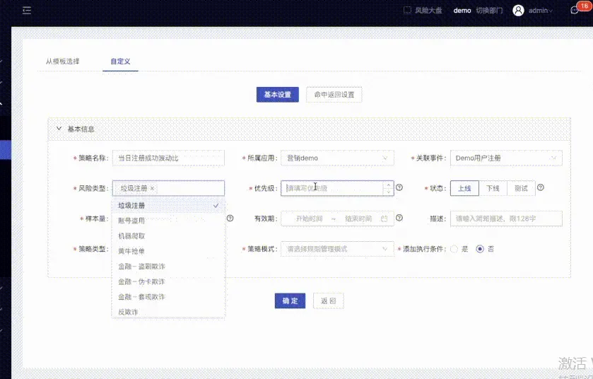 接下来,我们将以“垃圾注册”里一个基础策略的配置为例,演示配置方法。