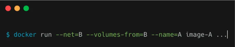 那这么来看的话,一个有 A 和 B 两个容器的 Pod,不就是等同于一个容器(容器 A)共享另外一个容器(容器 B)的网络和 Volume ?这好像通过 docker run --net --volumes-from 这样的命令就能实现,就像这样。