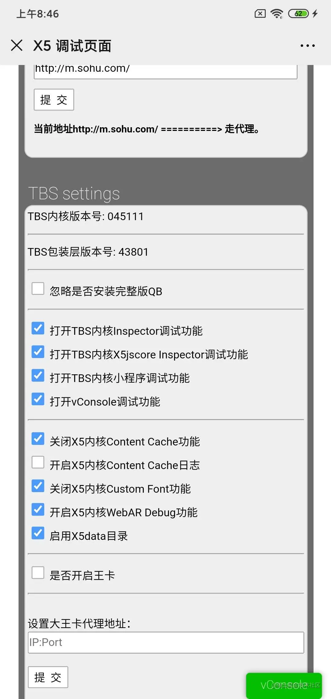 IOS不支持X5内核所以不能使用上述方法。但是可以直接在html中嵌入vconsole.js