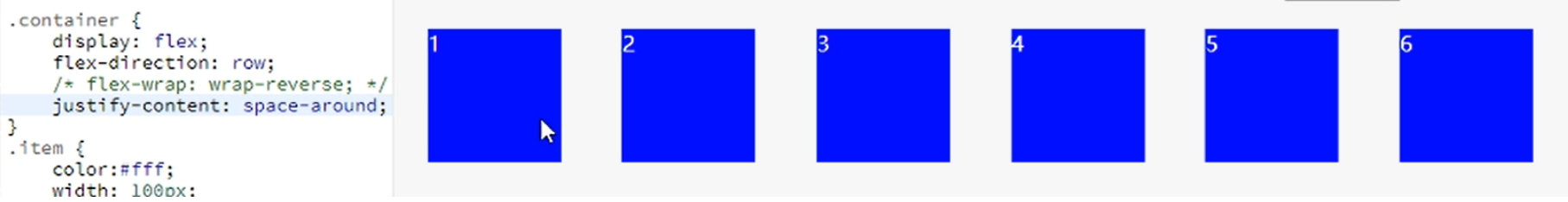 space-around每个 item 之间的间距相等,item 与边框的间距是 item 之间间距的一半。