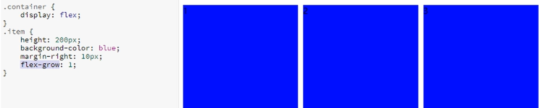 给某个元素增加一个 flex-grow 属性,就会修改其占有的父容器的比例。如下图,无论页面宽度如何变化,占的宽度比总是 1:2:1