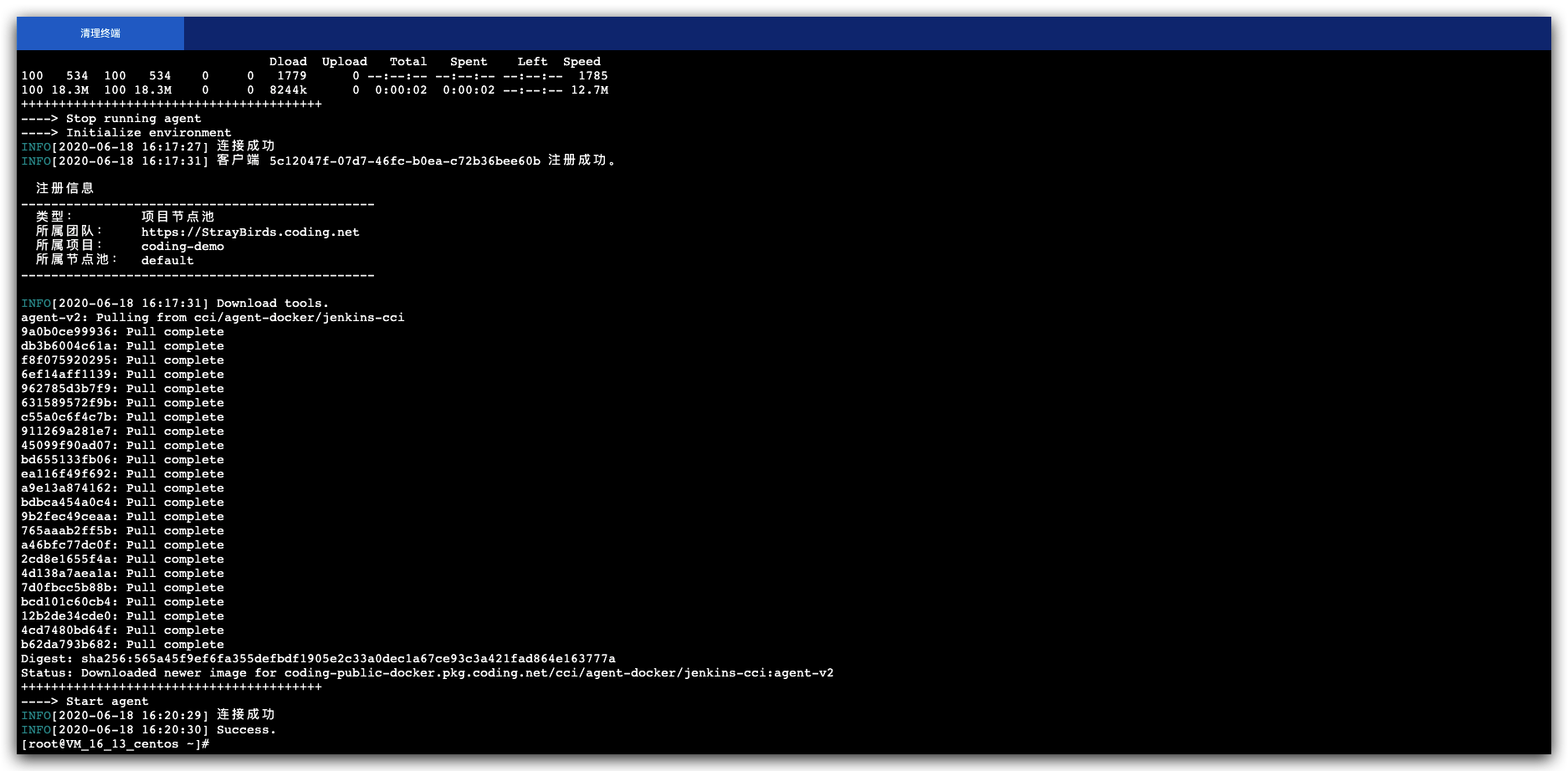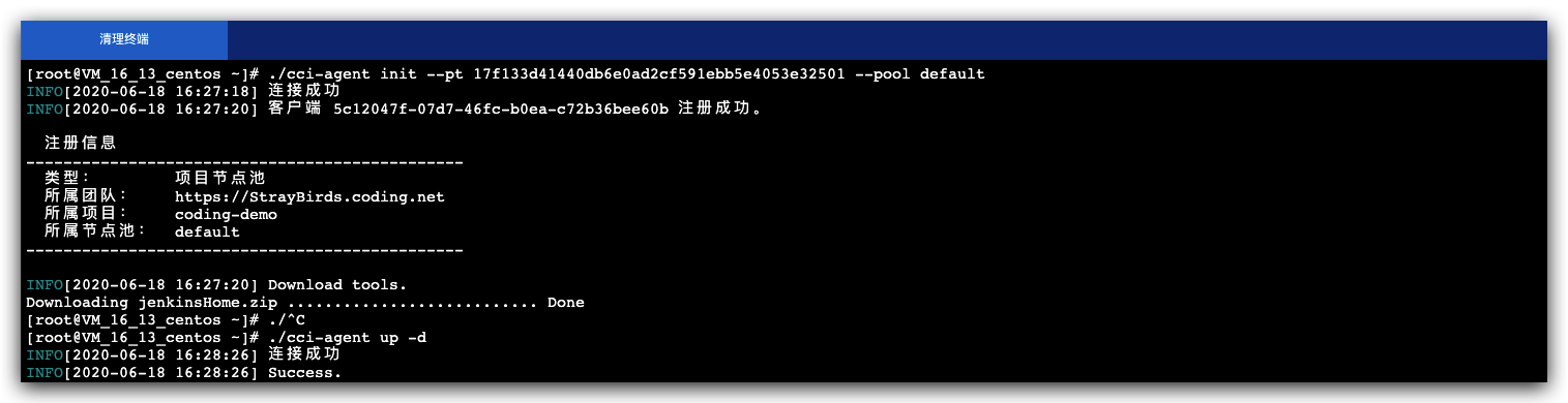 在 CODING 的构建节点页一键生成初始化命令,并在服务器中运行该命令。