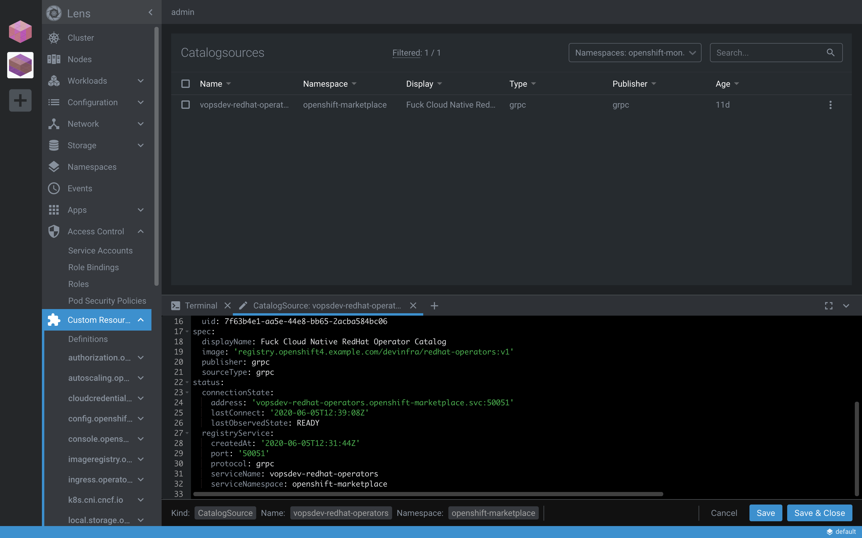 只是与 Openshift 的监控还不太兼容。也可以很轻松地查看并编辑 CR: