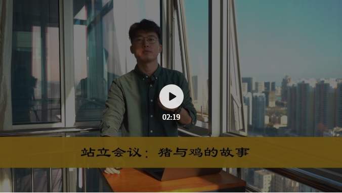 视频中跟大家分享了猪与鸡的故事, 在Scrum中,猪包括Scrum Master、产品所有者、开发团队等成员,而客户,市场商务人员都是Scrum中的鸡。猪才是团队的核心,拥有较大的话语权。