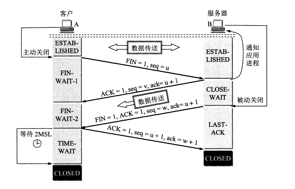 ACK=1 seq=v ack=u+1 - 此时B进入
