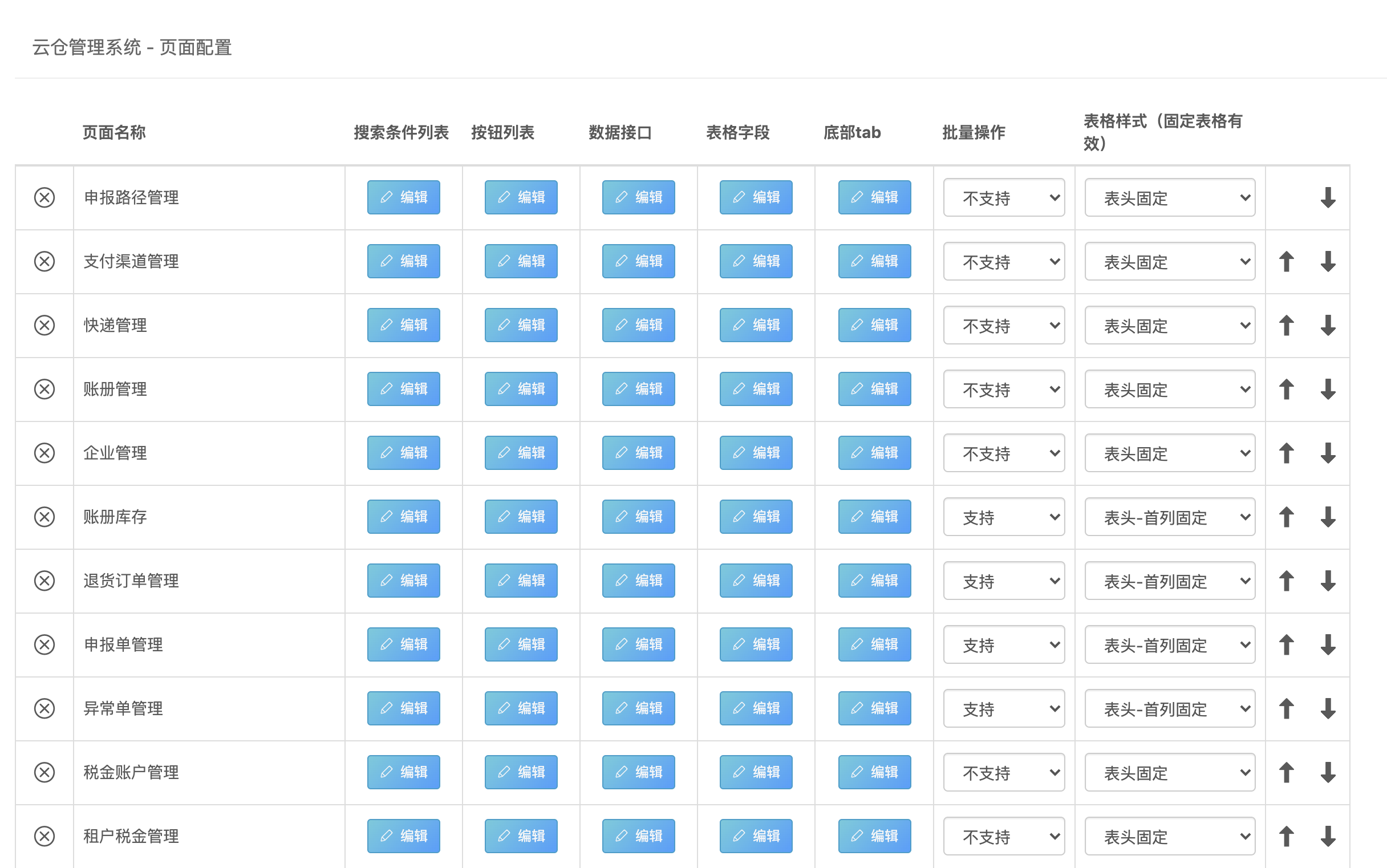 配置中心能批量的页面,一般为搜索条件+表格的页面类型。每一行为一个页面