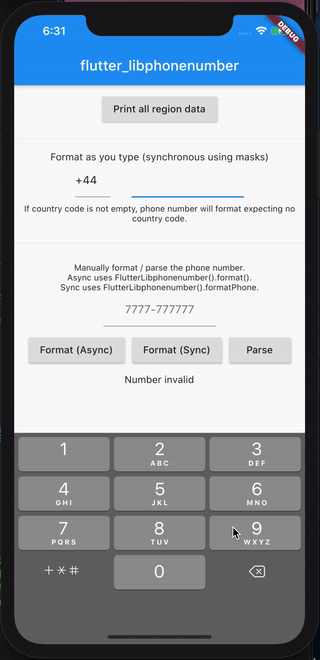 Leverages libphonenumber to allow for asynchronous and synchronous formatting of phone numbers in Flutter apps. Includes a TextInputFormatter to allow real-time AsYouType formatting.