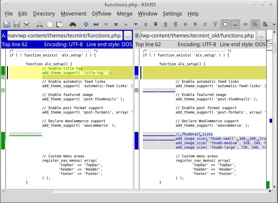 KDiff3 是另外一种很强大的跨平台差异比对及合并工具,它是由 KDevelop 开发而成,可以在所有类 Unix 平台上运行,包括 Linux ,Mac OS ,Windows 等。