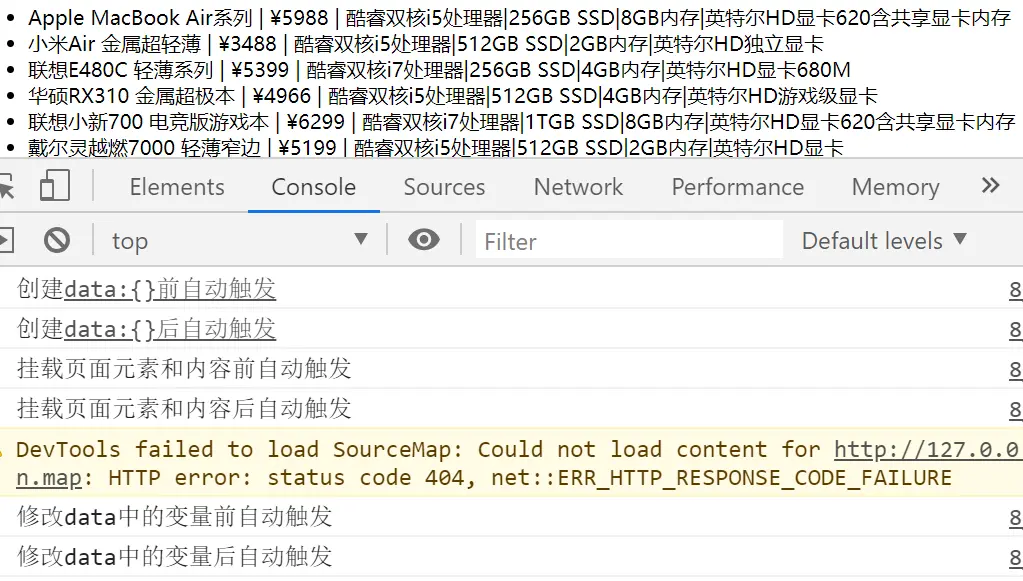 强调: 页面上<div id="app">中必须绑定并使用了data中的products变量才能出发更新阶段