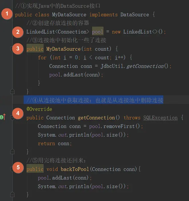 MyDataSource是我们自定义的一个连接池,自然也是需要实现该接口。