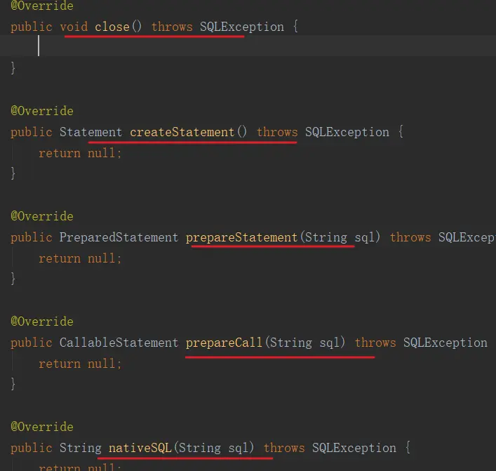 要知道Connection中是有很多很多方法的,并不是只有一个close方法。