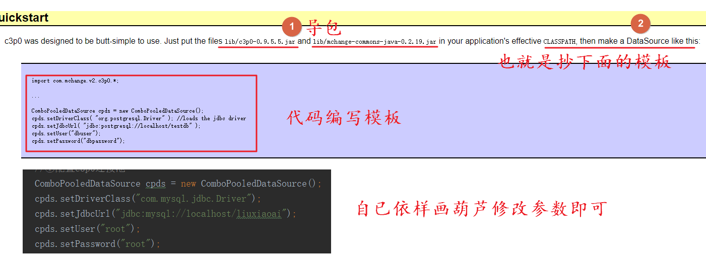 也就相当于工具说明书,不然别人也不知道怎么使用c3p0,那么具体如何使用?
