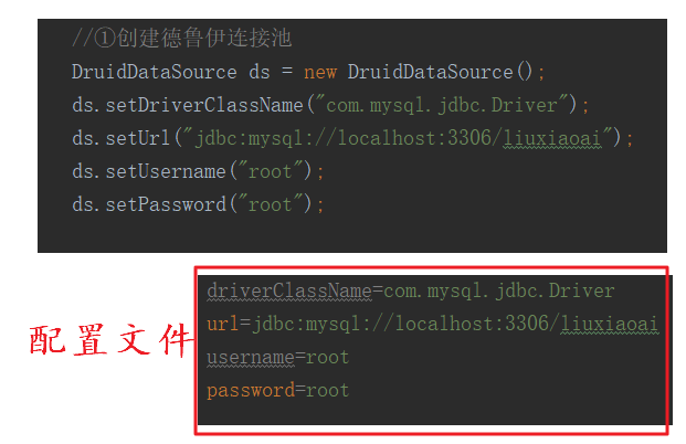 同样的道理,可以将这些属性放到一个配置文件里面,从而提高代码的拓展性。c3p0中使用的是xml,德鲁伊中使用properties。