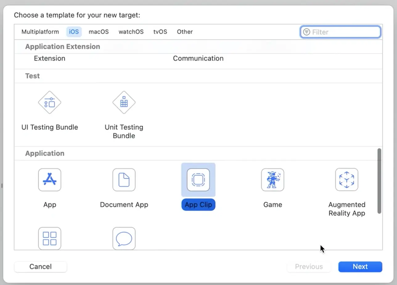 在实现上,Clip 和原生的 app 使用一样的方式。在 UI 框架上同时支持 UIKit 和 SwiftUI,有些开发者认为只能使用 SwiftUI 开发,这点是错误的。Clip 的定位和 watch app、app extension 类似,和 app 在同一个 project 里,是一个单独的 target。只是 Clip 并没有自己的专属 framework(其实有一个,但是主要包含的是一些特色 api),使用的框架和 app 一致,可以认为是一个精简版的原生 App。