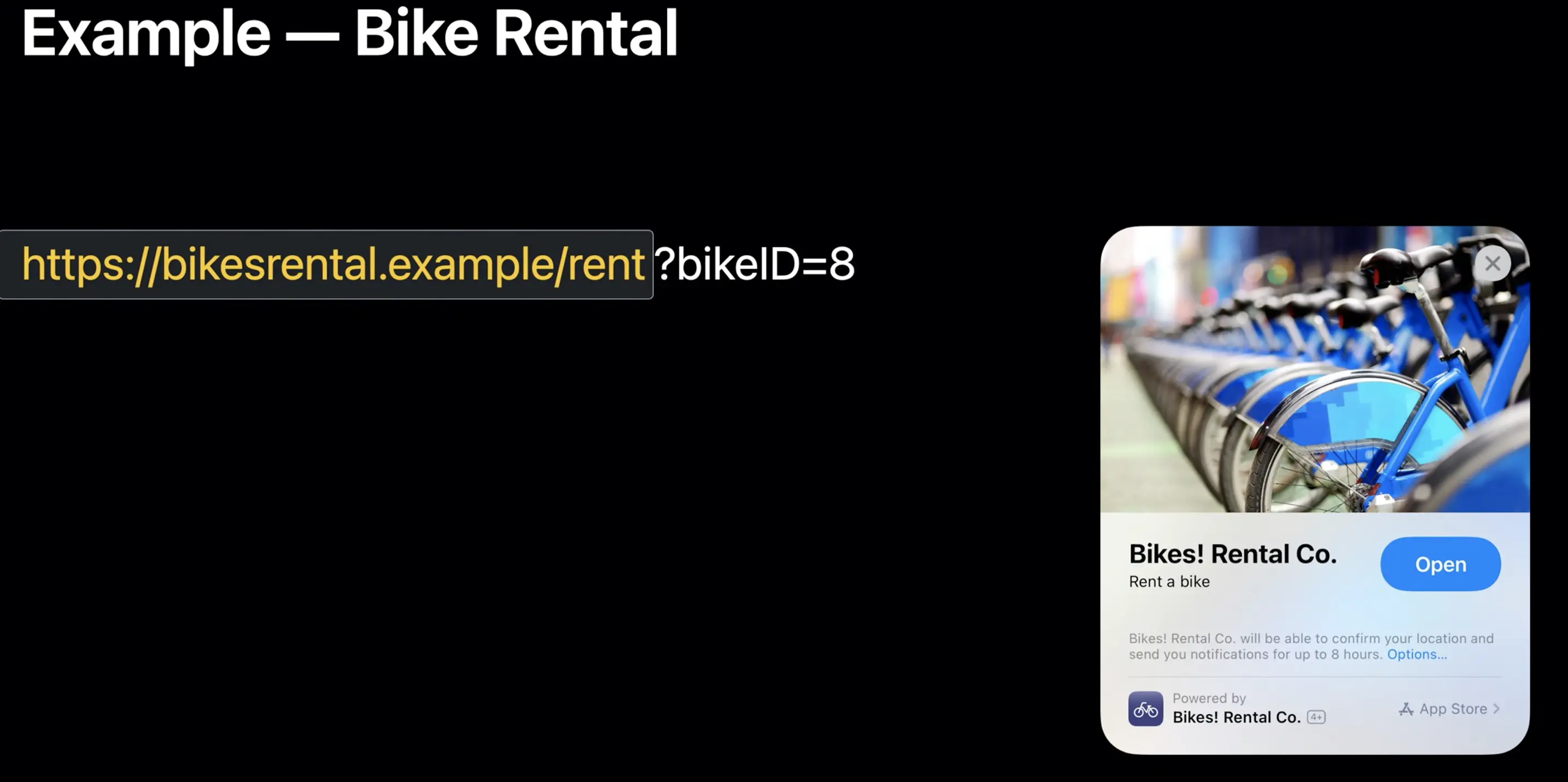 Siri 附近建议和苹果地图(在 connect 中可以配置 clip 的地理位置)。场景和前面的二维码类似,如果我在地图上看到一个商家,商家有提供服务的 Clip,我可以在地图或者 Siri 建议里直接打开 Clip。
