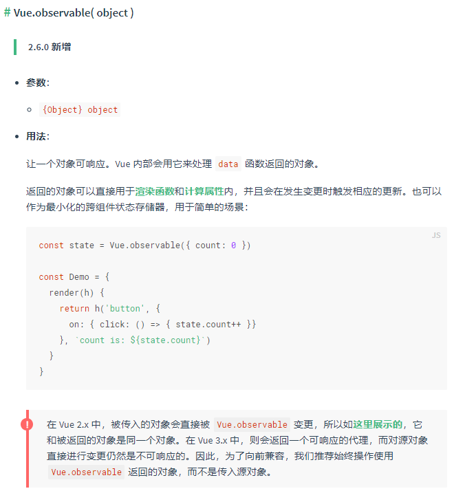 官方文档对于vue.observable()的介绍