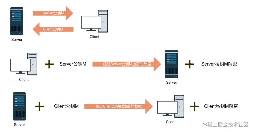 - 服务器拿到加密的密钥X,用服务器私钥M解密得到密钥X的明文