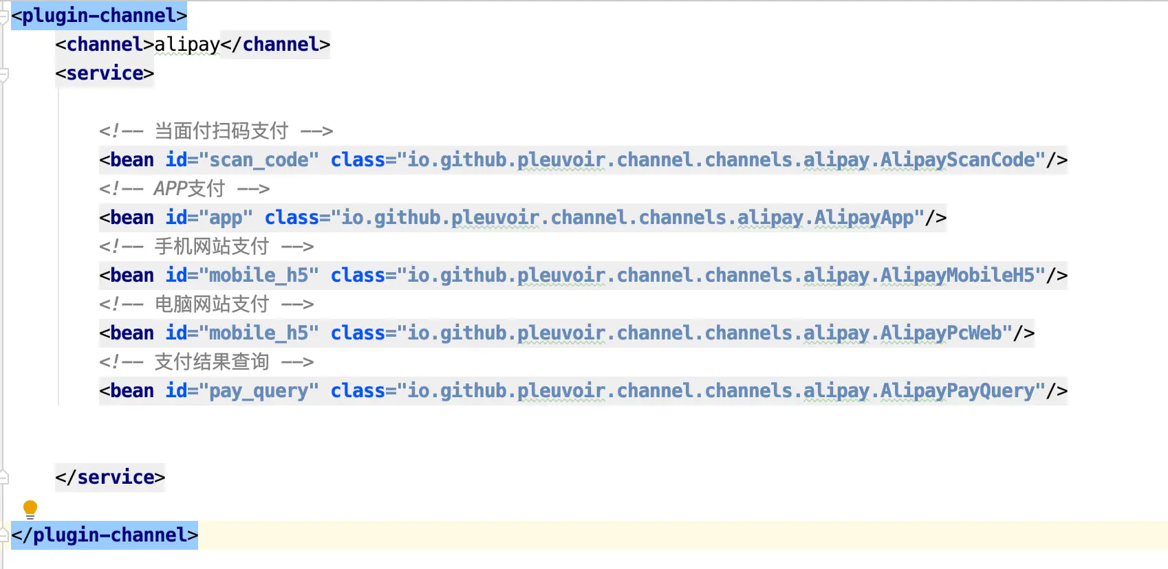 channel-alipay.xml 中是这样的: