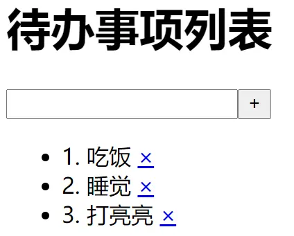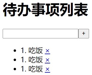 1. 吃饭 <a href="javascript:;">×</a>