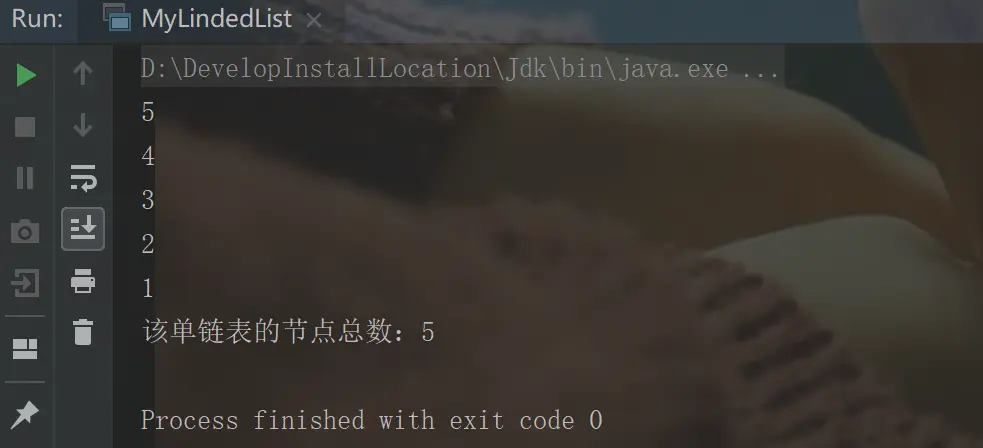 }最后的输出结果显然是逆序,因为没一个新的元素都是从头部插入的,自然第一个就是最后一个,最后一个就是第一个: