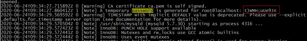 安装了mysql5.7之后初始密码不再默认为空,初始密码会生成一个默认密码。密码会输出到mysql日志中。日志文件的位置在/var/log/mysqld.log