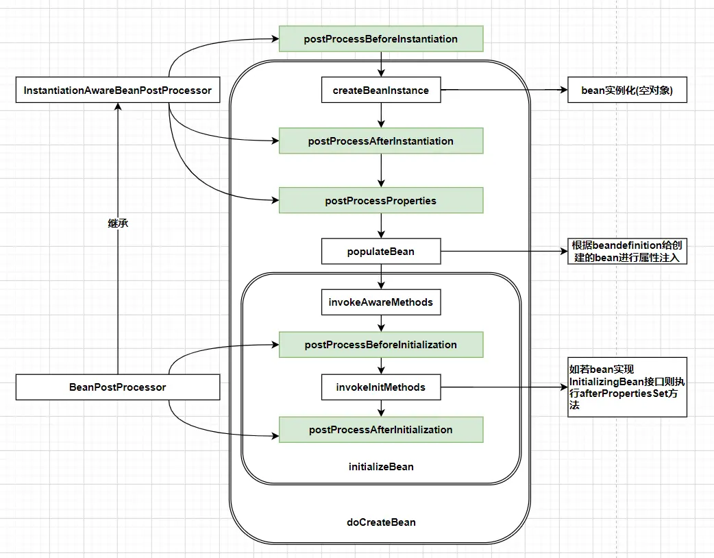 附录:BeanPostProcessor接口在spring中创建bean的关键位置图: