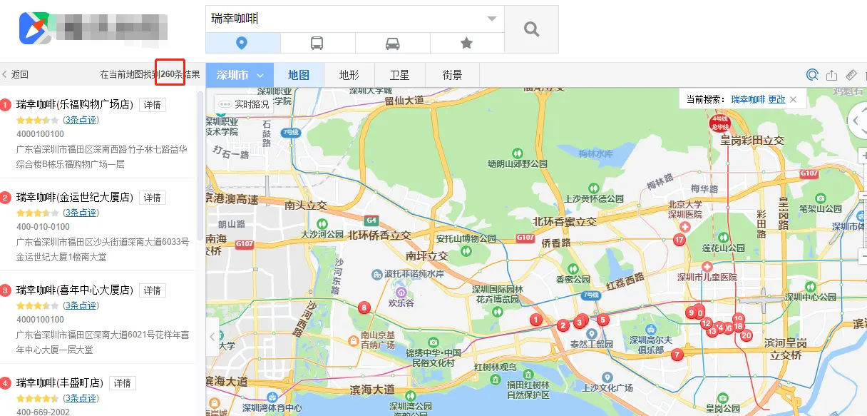 不过如果你要计算全国的数据的话,这个方法并不可靠,因为无法避免山寨店的存在,山寨店一样也会被记入到腾讯地图中,而一线城市的监管严格,比较少出现山寨店的情况,因此可以用这个方法计算。