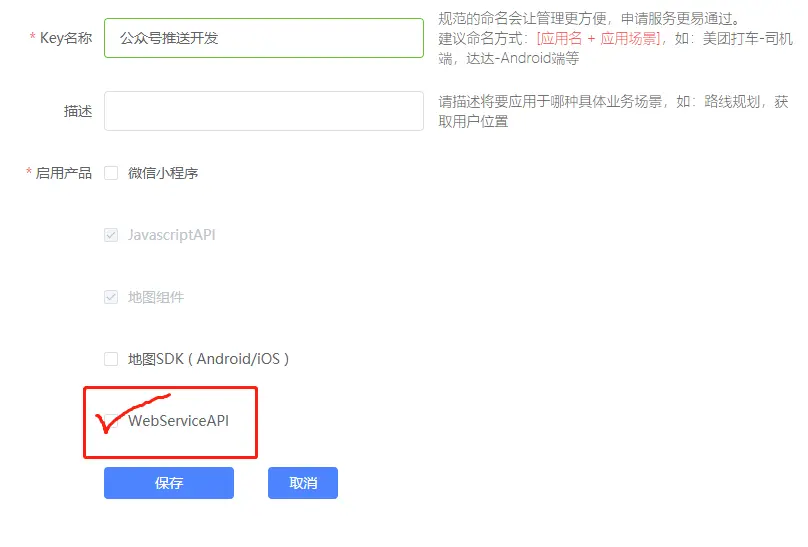 你只需要上去注册账号,申请Key即可调用相关的接口,申请完了记得开webserviceAPI,选择签名校验的形式调用接口: