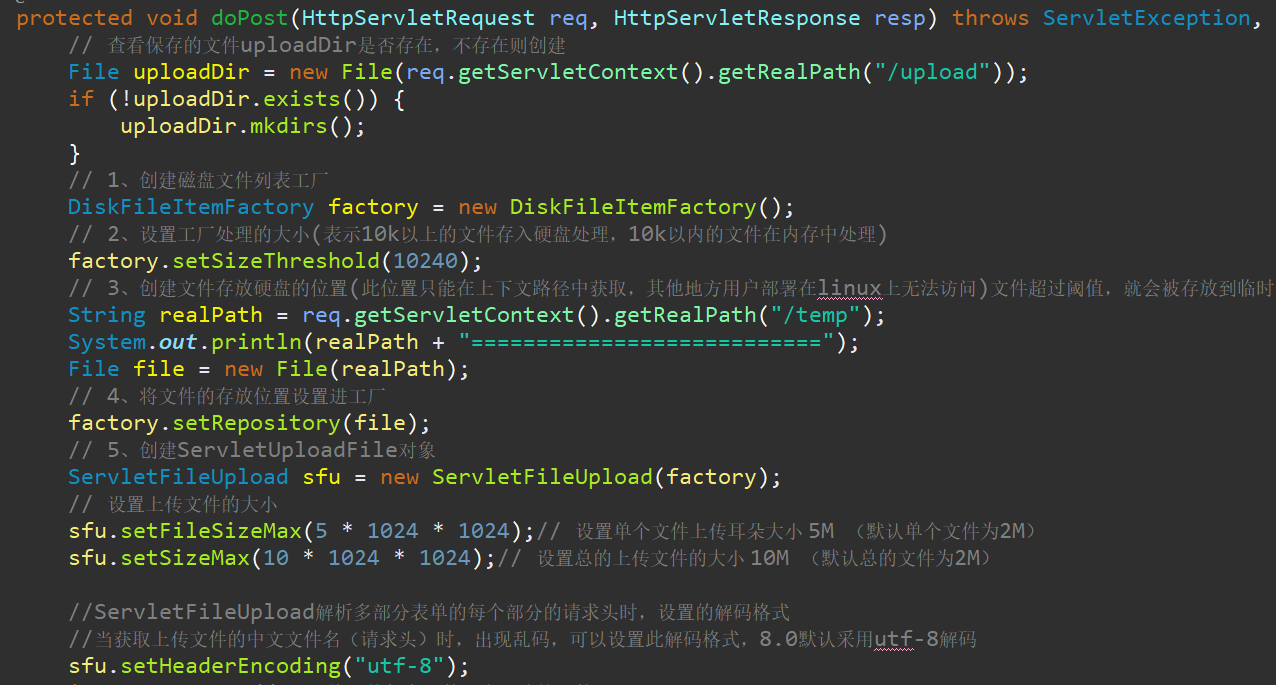 问题一:ServletFileUpload解析多部分表单的每个部分的请求头时,当获取上传文件的中文文件名(请求头)时,出现乱码,可以设置此解码格式,sfu.setHeaderEncoding("utf-8");8.0默认采用utf-8解码
