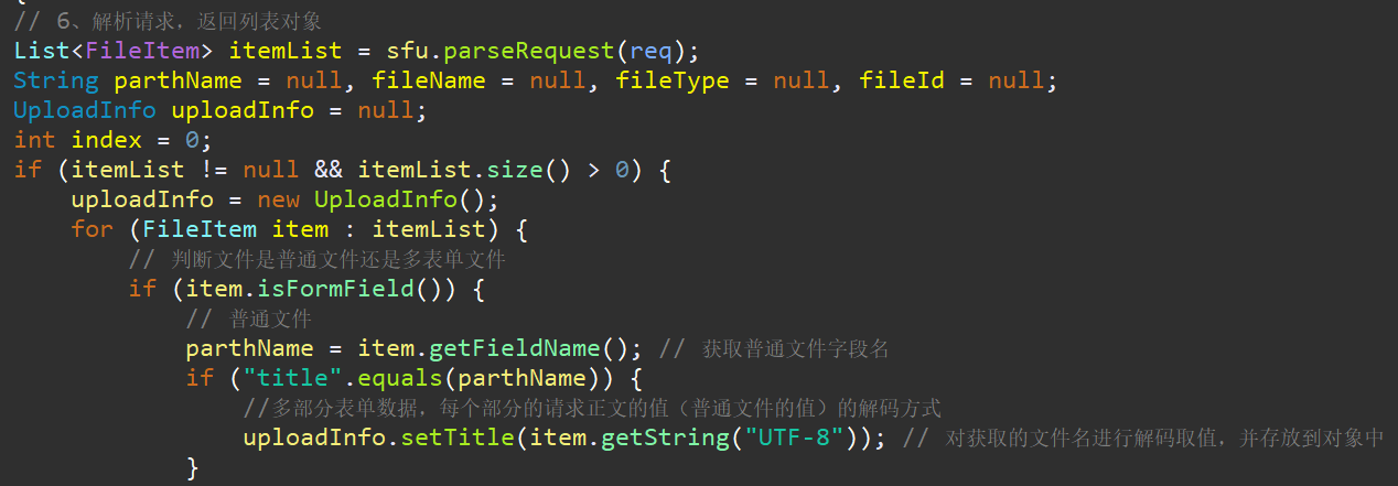 parthName = item.getFieldName(); // 获取普通文件字段名
