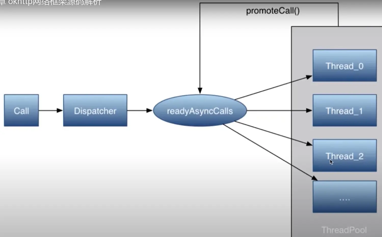 -- 进入promoteCalls() 其中的操作就是遍历异步等待请求队列readyAsyncCalls.iterator(),移除最后一个请求任务(i.remove())并加至异步执行队列(runningAsyncCalls.add(call))并执行(execute(call))。