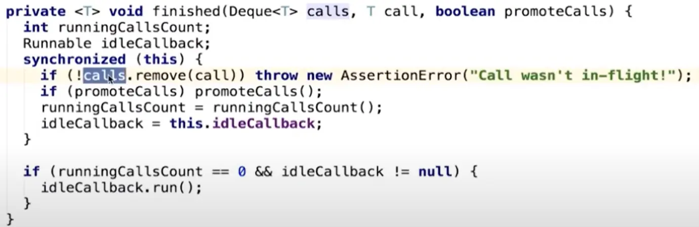 calls.remove(call),把异步请求从正在执行的异步请求队列中移除;