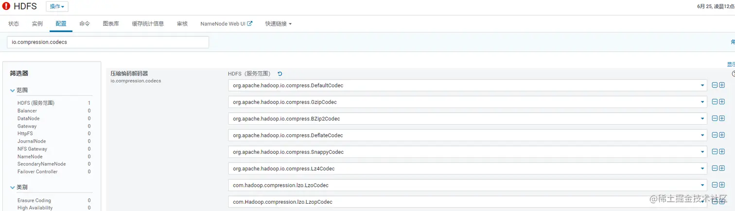 1)将io.compression.codecs新增一行,填入