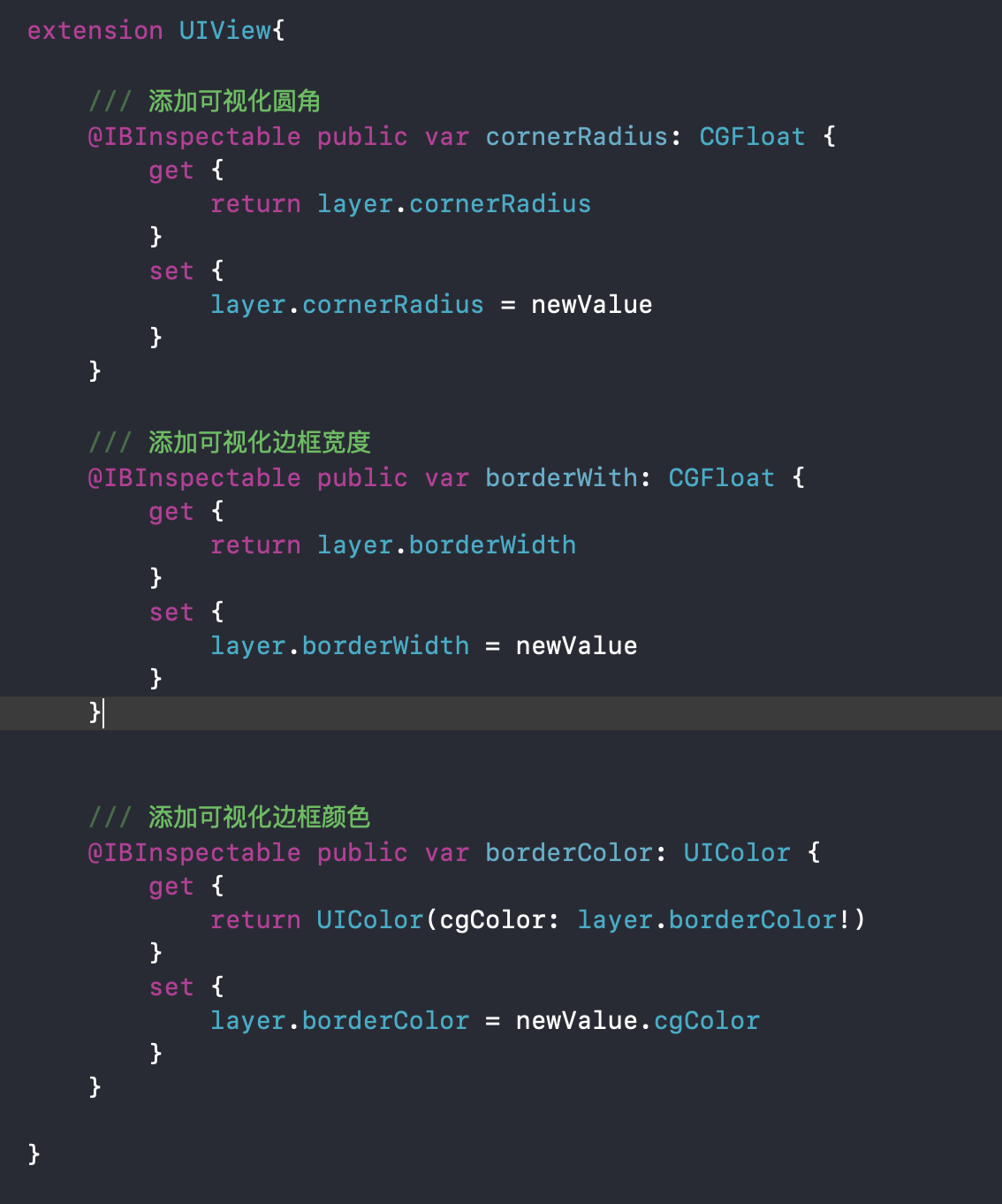 iOS xib storyBoard 中添加可视化属性 Jerry_Mao 2020-06-26 967 阅读1分钟 @IBInspectable :属性前面增加@IBInspectable 标识,可以在xib 和 storyBoard 可视化操作时显示属性设置 如果有UIView 的子类 添加@IBDesignable 标识,可以在设置时随设置值变化显示