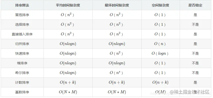 常见排序算法总结图: