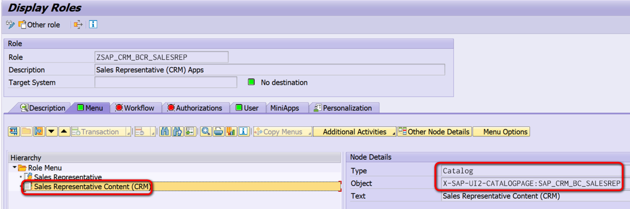 例如下图这个我新建的PFCG Role ZSAP_CRM_BCR_SALESREP: