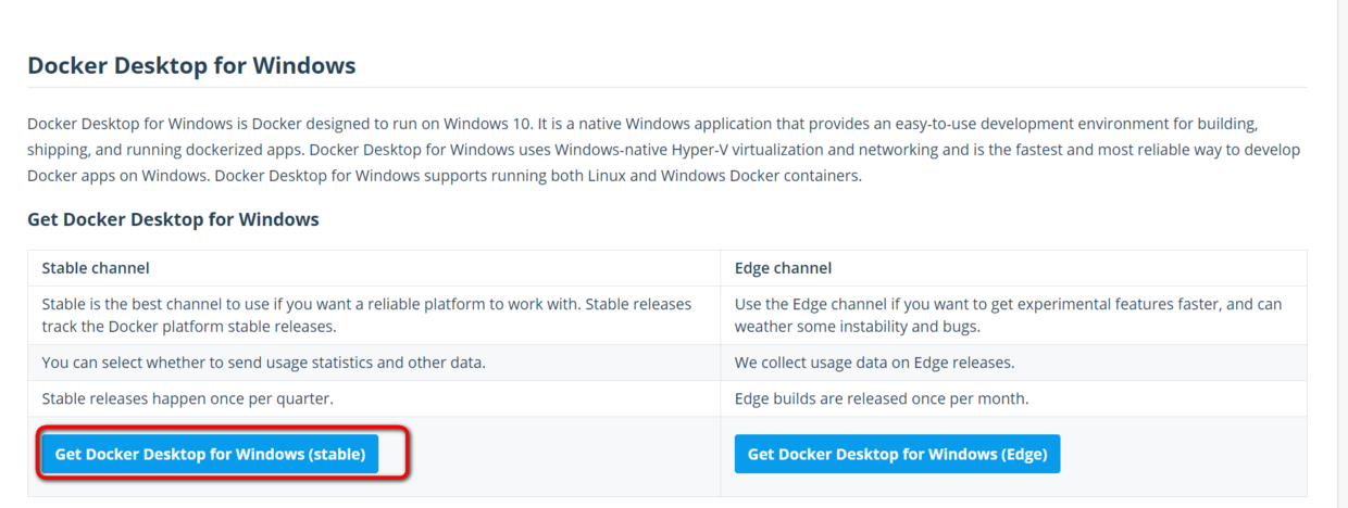 Docker官网下载Docker For Windows的Community版本: