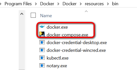 安装默认会把Docker命令行工具docker.exe和容器编排工具docker-compose.exe安装到Program Files的Docker文件夹内: