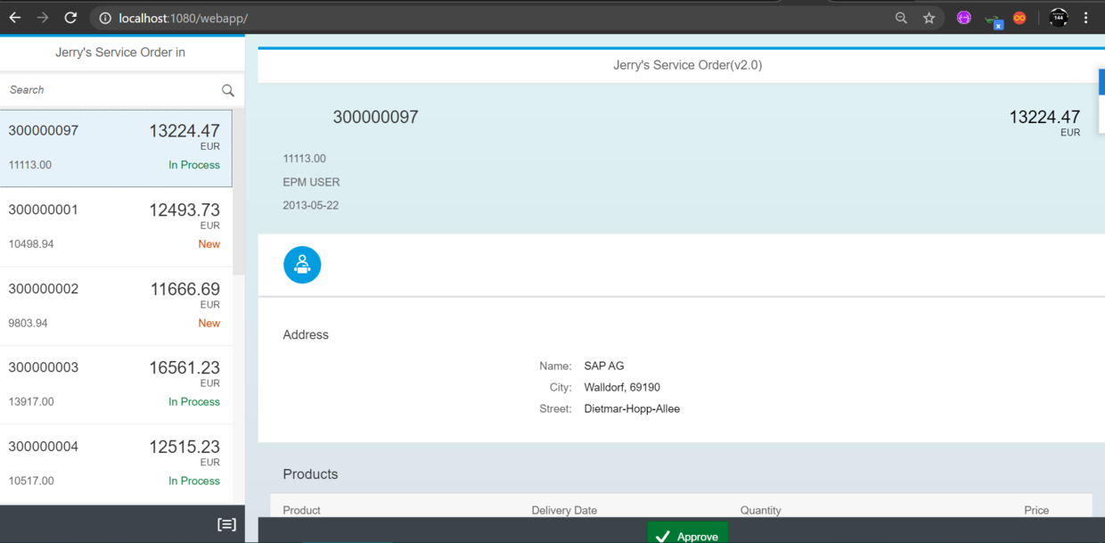 --name: 给启动的容器实例取一个名字。 执行完命令行之后,浏览器输入如下url,即可访问到运行在容器内的Nginx之上的SAP UI5应用: