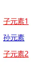 - 子选择器(E>F):选择所有作为E元素的直接子元素F,对更深一层的元素不起作用,用>表示