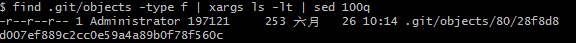 1.find .git/objects -type f | xargs ls -lt | sed 100q 查找缓存区 最近修改的100个文件