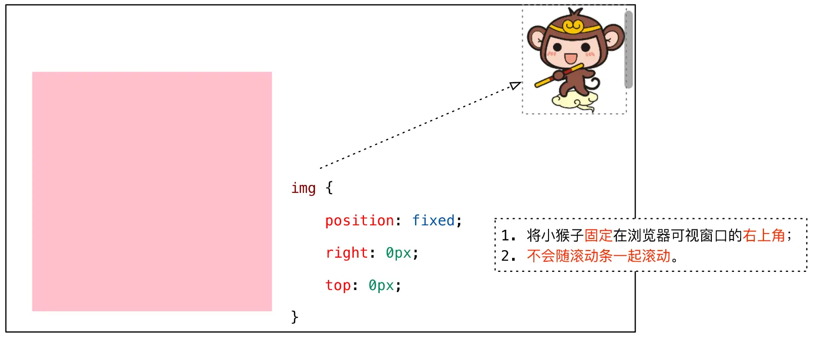 - 只认浏览器的可视窗口,跟父级元素无任何关系,不随滚动条而滚动
