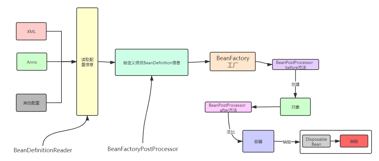 写在之前:IOC的源码比较复杂,所以个人建议视频方式学习,大家可以B站搜索阁主梧桐(笔者认为讲的不错的一个解读),如果大家不喜欢视频的方式,又想深度学习IOC源码那么推荐**程序员囧辉**它的博客对于IOC的讲解非常深入。另外本文接下来的Spring源码,主要是通过图示的方法梳理其流程,作者水平有限。如有错误请留言。