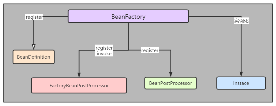 这个时候又有了一个问题,我们不想通过BeanFactory直接生产了,需要对这个工厂进行一些特定处理,于是出现了BeanFactoryPostProcessor,用来对工厂做一些特定的处理。我们自己可以通过实现这个接口,进行自定义BeanFactory。又有兄弟说了:我想单独创建一些我喜欢的对象,安排,FactoryBean诞生了,它可以帮助我们创建一个我们需要的对象(第四部分详细解释他们之间的区别)。